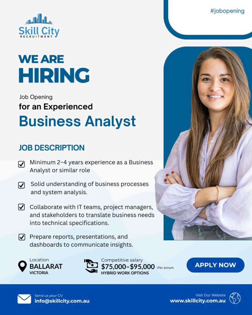 An established organisation in Ballarat is seeking a proactive and detail-oriented Business Analyst to support business process improvement, data analysis, and stakeholder collaboration. The role involves gathering and documenting requirements, analyzing business needs, and driving solutions that enhance operational efficiency and decision-making.