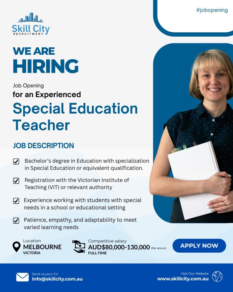 A leading educational institution in Melbourne is seeking a dedicated and experienced Special Education Teacher to support students with diverse learning needs. This role involves developing and delivering tailored educational programs that foster inclusion, growth, and success for every student.